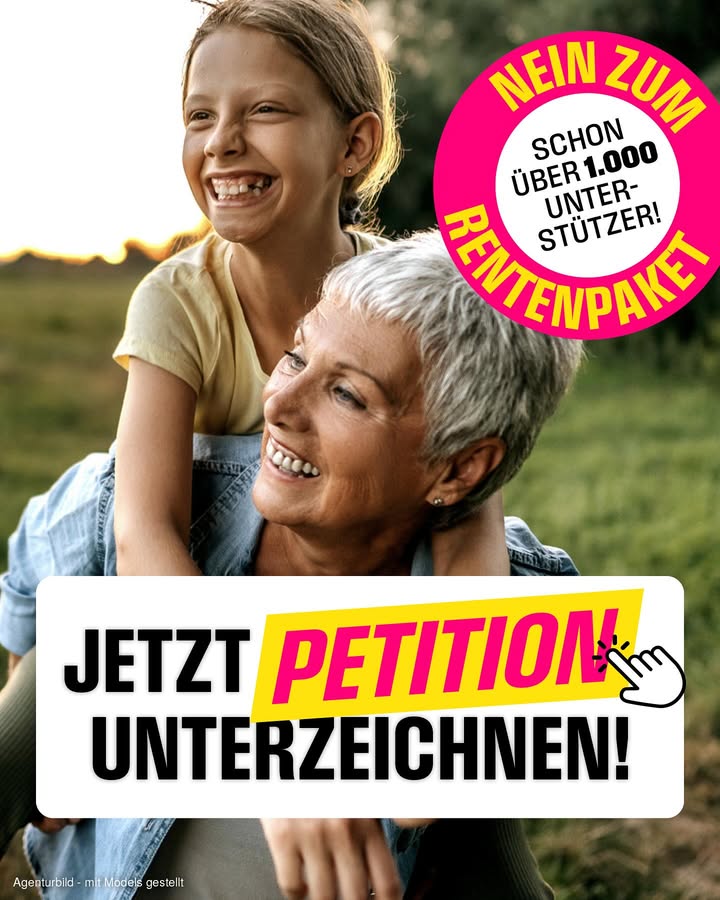 Wow - schon 1000 Unterstützer in weniger als 24 Stunden! Bei der Rente steuert die schwarz-rote Regierung völlig kopflos in ein Desaster. Wir brauchen jetzt einen Systemwechsel, um das Rentensystem nachhaltig zu stabilisieren. Zeit für die Aktienrente, damit zukünftig alle Beitragszahler - insbesondere auch Geringverdiener - eine verlässliche Altersvorsorge haben. Die Zeit drängt. Jetzt kommt es auf Dich an: Unterstütze unseren Aufruf! Setzen wir uns gemeinsam dafür ein, dass die Rente sicher und generationengerecht wird: fdp.de/rentenpaket-stoppen